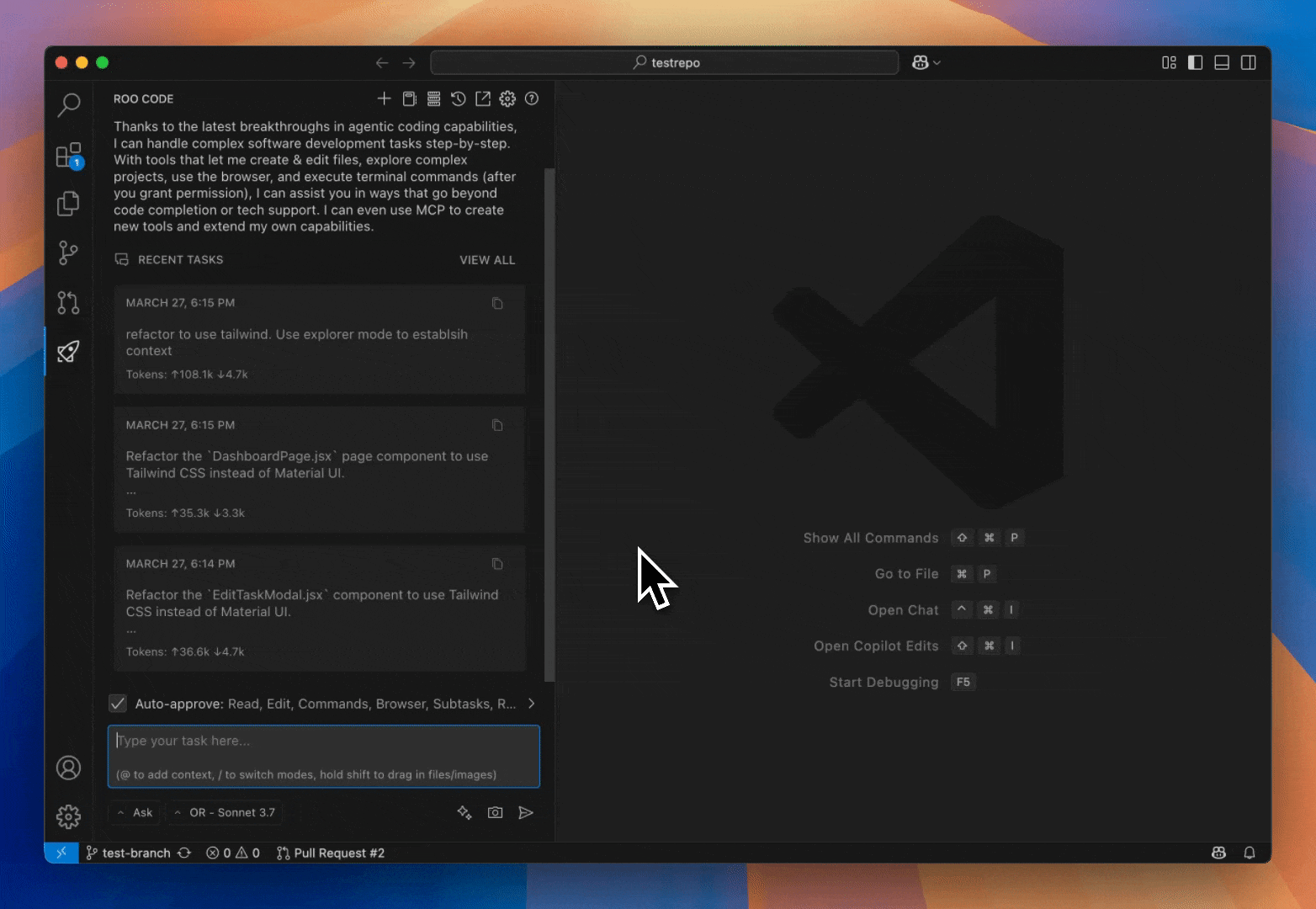 Open the Roo Code Panel: Click the Roo Code icon () in the VS Code Activity Bar